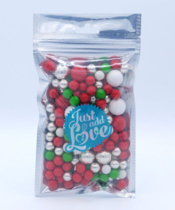 Missangas de açúcar de cores brilhantes, com aproximadamente 1mm, para decoração de bolos, bolachas, cupcakes, cakepops, donuts, sobremesas e outras preparações. A mistura de cores natalícias vai dar um toque especial as suas criações mais doces.